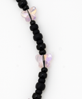 This elegant piece combines deep black beads with glass pink iridescent butterfly beads that shimmer like crystals — creating the perfect balance of bold and delicate.